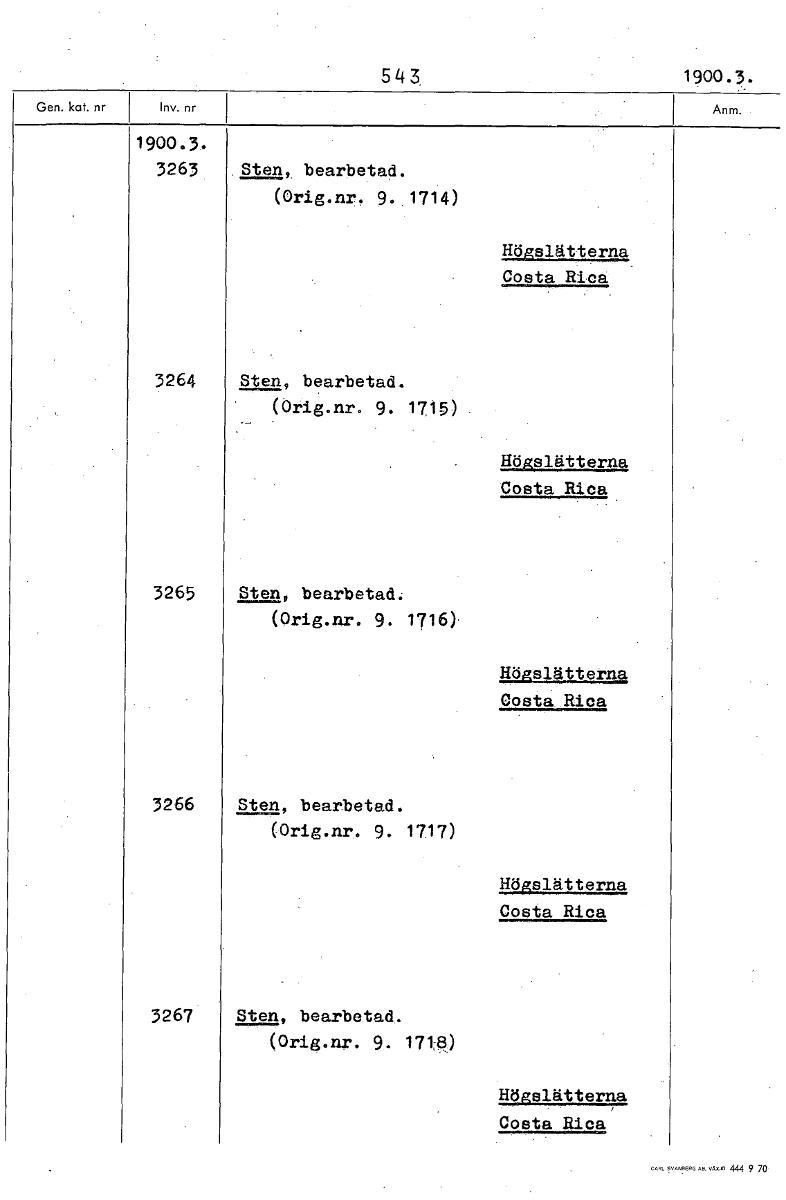 • 543 1900.3. 1900.3. 3263 Sten, bearbetad. (Orig.nr. 9. 1714) Högslätterna Costa Rica 3264 Sten, bearbetad. (Orig.nr. 9. 1715) Högslätterna Costa Rica 3265 Sten, bearbetad. (Orig.nr. 9. 1716) Högslätte... Visa hela