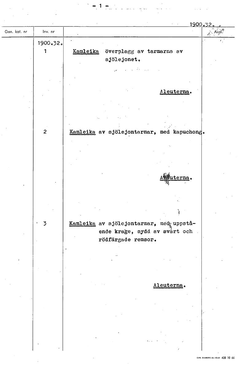 • 1900.'32. .., 1900.3 . 1 Kamleika överplagg av tarmarna av sjölejonet. Aleuterna. 2 Kamleika av sjöiejontarmar, med kapucho Literna. 3 Kamleika av sjölejontarmar, med uppstå- ende krage, sydd av svärt... Visa hela
