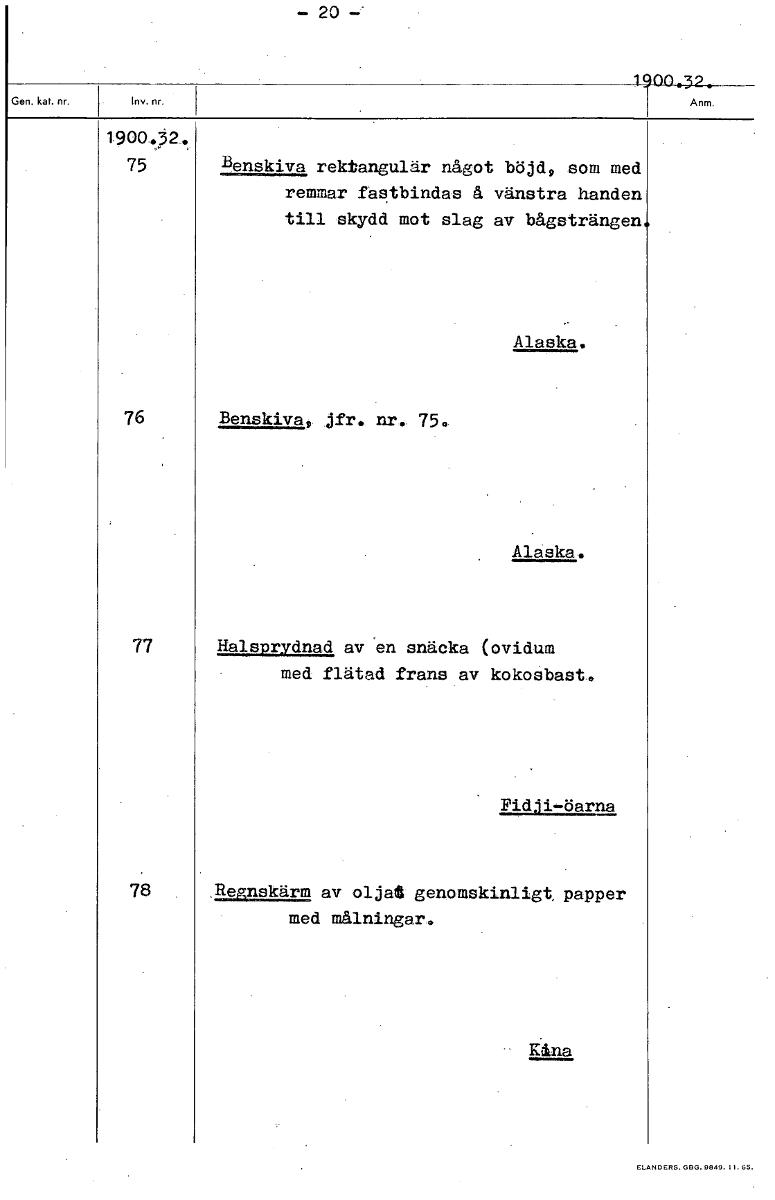 • Boksida ur Etnografiska museets generalkatalog.
