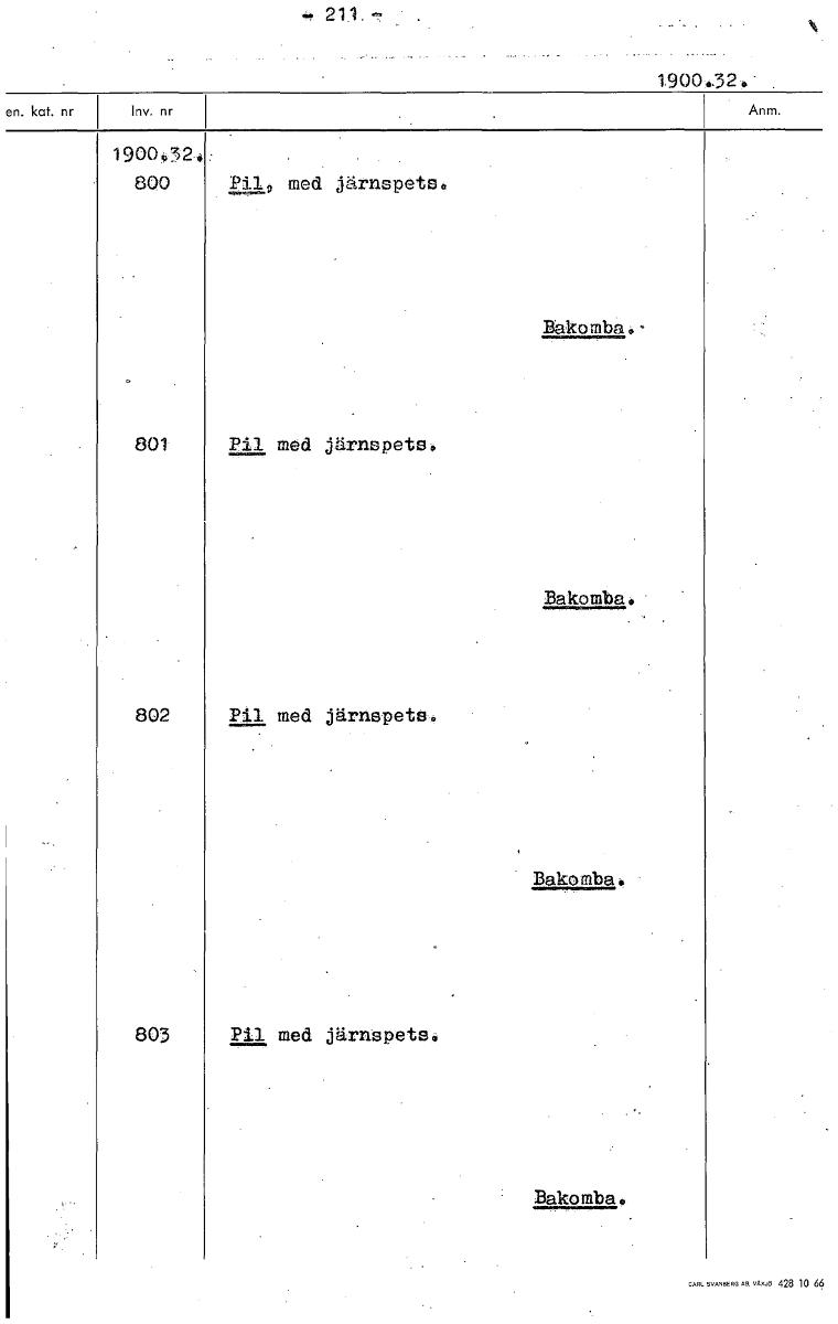 • 1900,324- 19004324 800 P112 med järnspets. Bakomba 0 801 Pil med järnspets. Bakomba • 802 Pil med järnspets Bakomba. 803 Pil med järnepeteA Bakomba [ocr]