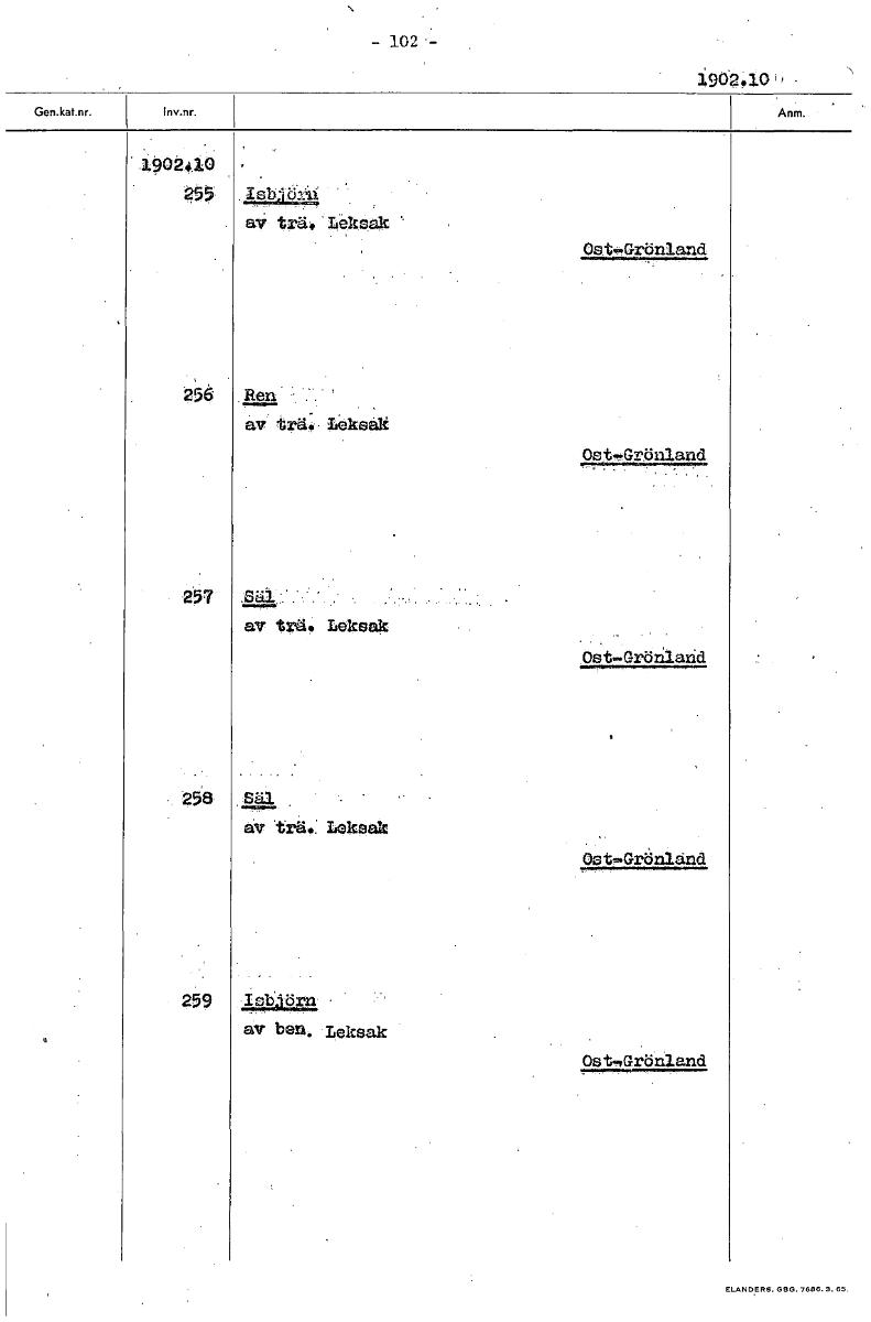 • - 102 - 3:902.10 1902410 g55, IskLy4 av trä. 'Leksak ' Os.t•Grönland 256 Ren . . av trä.‹ Leksak Ost ..m•Grönland 25? av trä. Leksak Ost-Grönland 258 Säl av trä.: Leksak Ost .Grönland 259 Isbjörn' av ... Visa hela