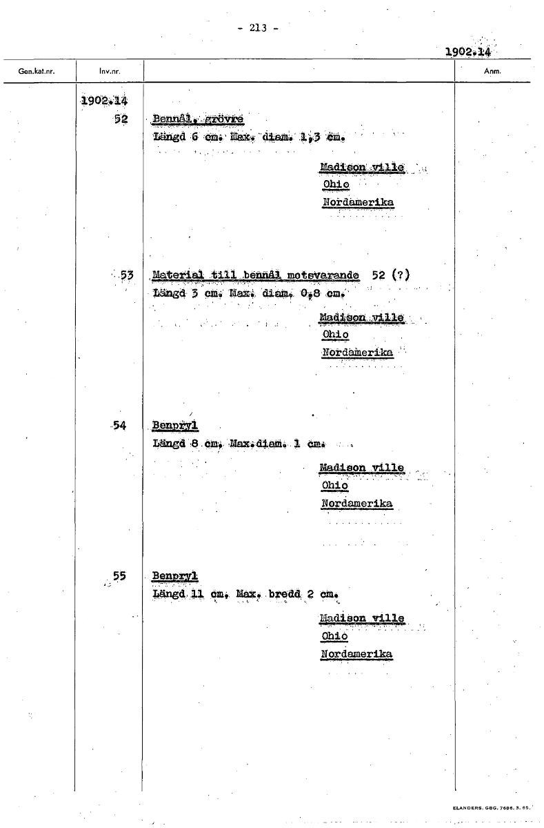• Boksida ur Etnografiska museets generalkatalog.