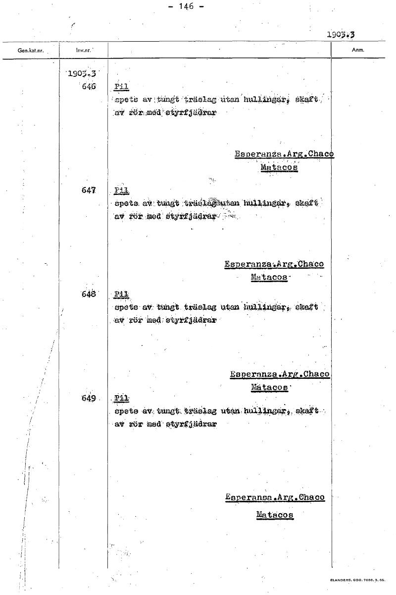 146 - `1907,3 646` Pil av;:biinåt träslag liten hullingar: Sk:, sv iti»:Ineti'•firtyArtjgiara.r Eaperania.Ar .Chas Matacos 647 • Spets a'Ot:t4aåt:ti4g1 'utan. hu34, Igärt ror, .åtygtz,å,4d °. 1122.ac0 Matacos- - 64å spets av, tillåt tzgitslag utan ligii4riåapi›, åkgt ;at röj, mea).stytrj4drait Esperanza.Arg.Chaco Matacos' 649 stpets tr,ä4az ut4n,kiti~s sky • at• rör itasd.stytglildrar, Esperansa *Arg Cha co Matäco s [ocr]