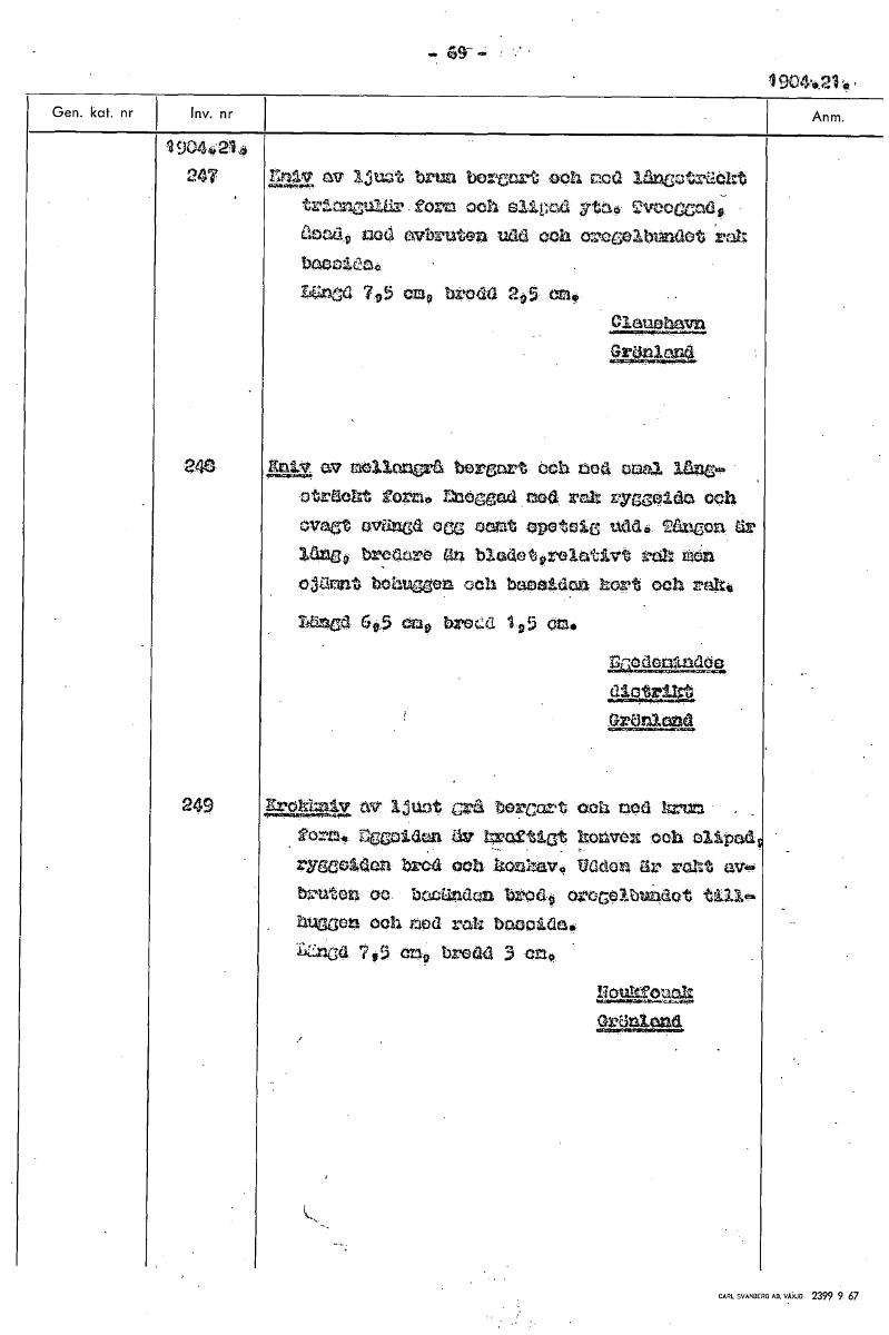 -Q 1 904,421. 19044214. 247 T av ljut brun ber eart och red trächt form och oligoa Ytag, 2vD0Cendo aond9 nod ovbrutQn u& och owcco1bundot rak bacoiCa4 1,4bc3 79 hr aa 295 an, 934.0.34.-241 240 an av molIancrå borgart Och bod umal Une. oträcht gorm. Enowad nod rak rycgOlda och ovant cvänGd o aamt aDatale uadii TanCan ar lång9 hrednrC än hladetprelativt rok taörl °Pant boauWou, coh basdon kort och raht, Längd 45 cm* bred 105 en4 n-oa dec 01~11 Gröraand 249 .E.EgKR4v av 1Juf.4 Grå horeart och mod kran , 2ortl! nccoldaa äv kratIct konvex och olipad nracoldon broa och konkav° Udden är ram av- On oo bocUndau brod9 orcGOlbuado hursacn och raed rak humidas L2,11Gd 7,5 ene bredd 3 cno Uoultrounk Grönland [ocr]