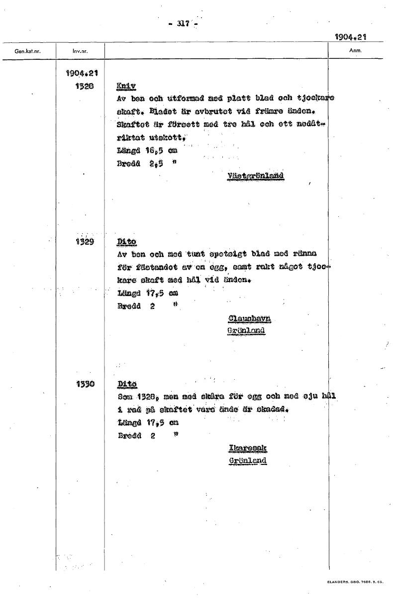 - 317 - 1904:21 1904:21 1320 riMit Av bon och utformad •mod platt blad och tjock ottan: Bladet är avbrutet vid Undan: Stot nreett med tro hdl och ett nodilt.. riktat utokott‘' Längd 16115 cm Brodd giy3 Vact_ ö and 13å9 24,414, Av bon och mod 'tunt opotolgt blad mod ränna för ftlotandet av-cn egg: camt rakt nkot tjoa kare datt med hdl vid indon: /anad 145 cm Bredd 2 14 Okauohavn Grönland 1330 am 13200 men med okära tör ogg och med Ou I rad pa (*artat vartnde r ~Ud: Und 170 en Brodd 2 Zkareaok Grönland [ocr]Stäng