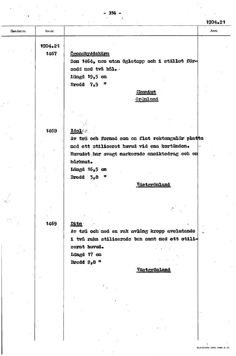 - 356 - 1904.21 1904.21 1467 eacnOkvddeklirm Dom 1464* ren utan kleta p och i stället ZU sedd med två Ml. - belagd 1995 cm Bredd- 795 II. ~ya • Grönland 1469 Av trä och formad som en flat rektang~ pla...Visa hela