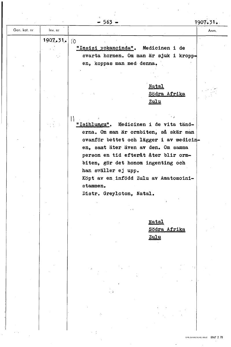 — 563 — 1907.31.. 190T.31,. [0 "Insizigirokana". Medicinen i de svarta hornen. Om man är sjuk i kropp en, koppas man.med. denna ' Natal Södra Afrika. ZUlu fl "Isihlungu". Medicinen i de vita tänd- ern...Visa hela