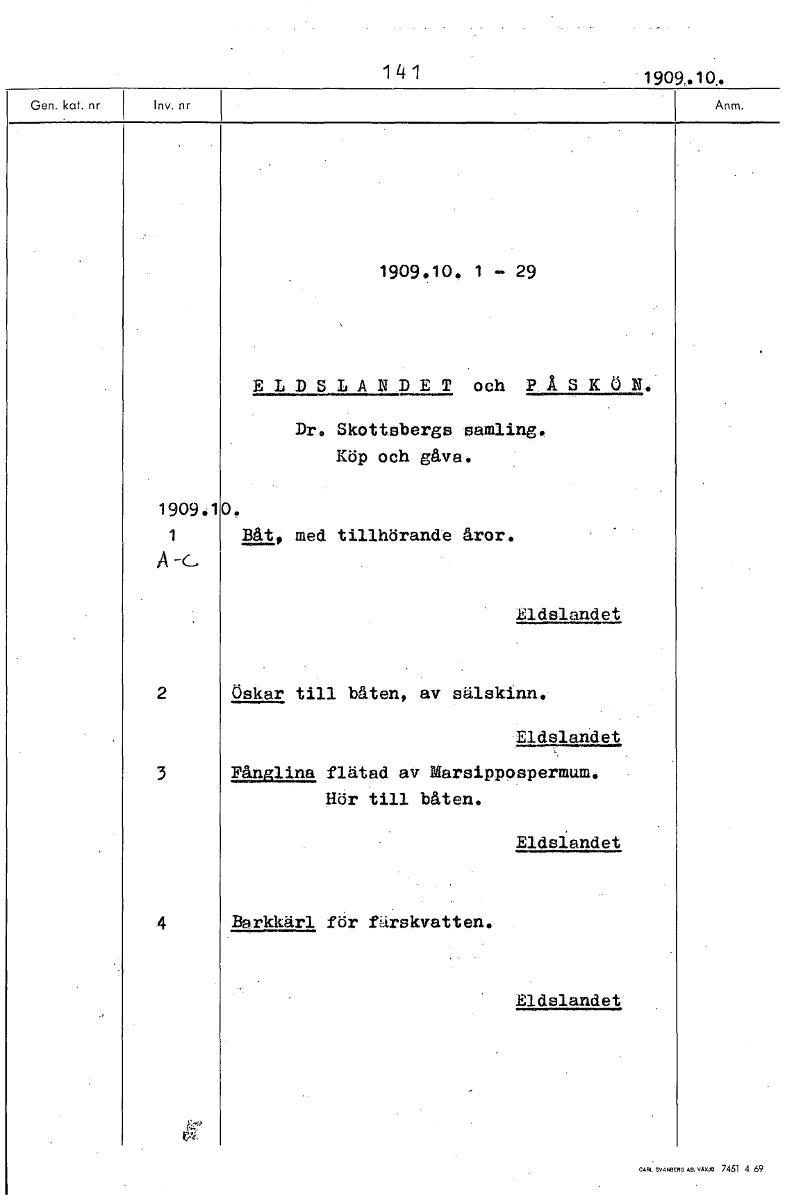 • Boksida ur Etnografiska museets generalkatalog.
