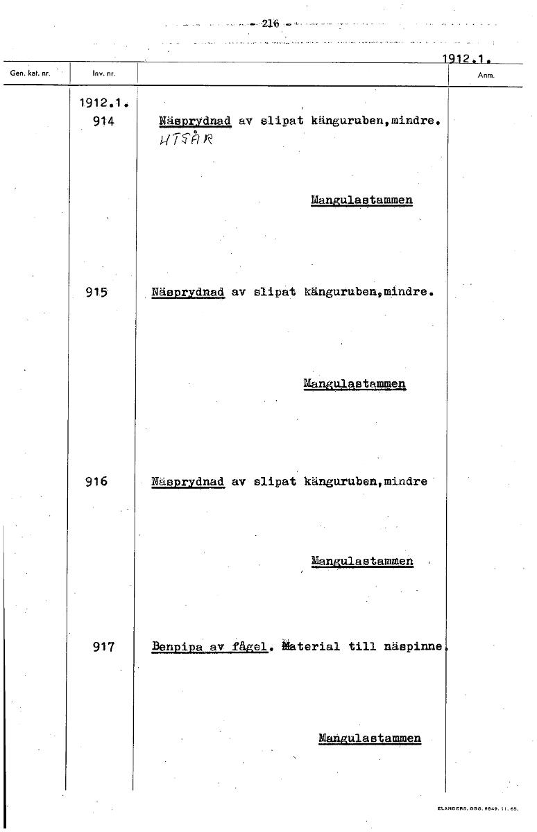 • 1912.1. 1912.1. 1912.1.914 Näsprydnad av slipat kängurubenemindree wiVå n Mangulastammen 915 Näsprydnad av slipat känguruben, mindre. Mangulastammen 916 Näsprydnad av slipat kängurubenomindre Mangulas... Visa hela