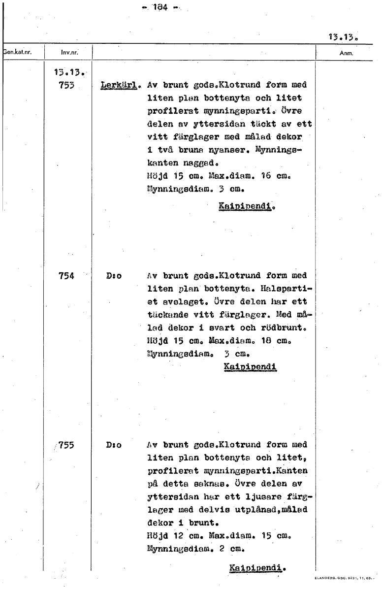 • 184 15.13. 13.13. 753 10.,r1PA,.. Av brunt gode.Klotrund form med liten plan bottenyta och litet profilerat mynningsparti övre delen av yttersidan täckt av ett vitt färglager med målad dekor i två bru... Visa hela