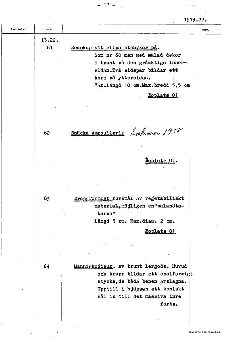 | Inventarienummer / Beskriver <itemNumber> |