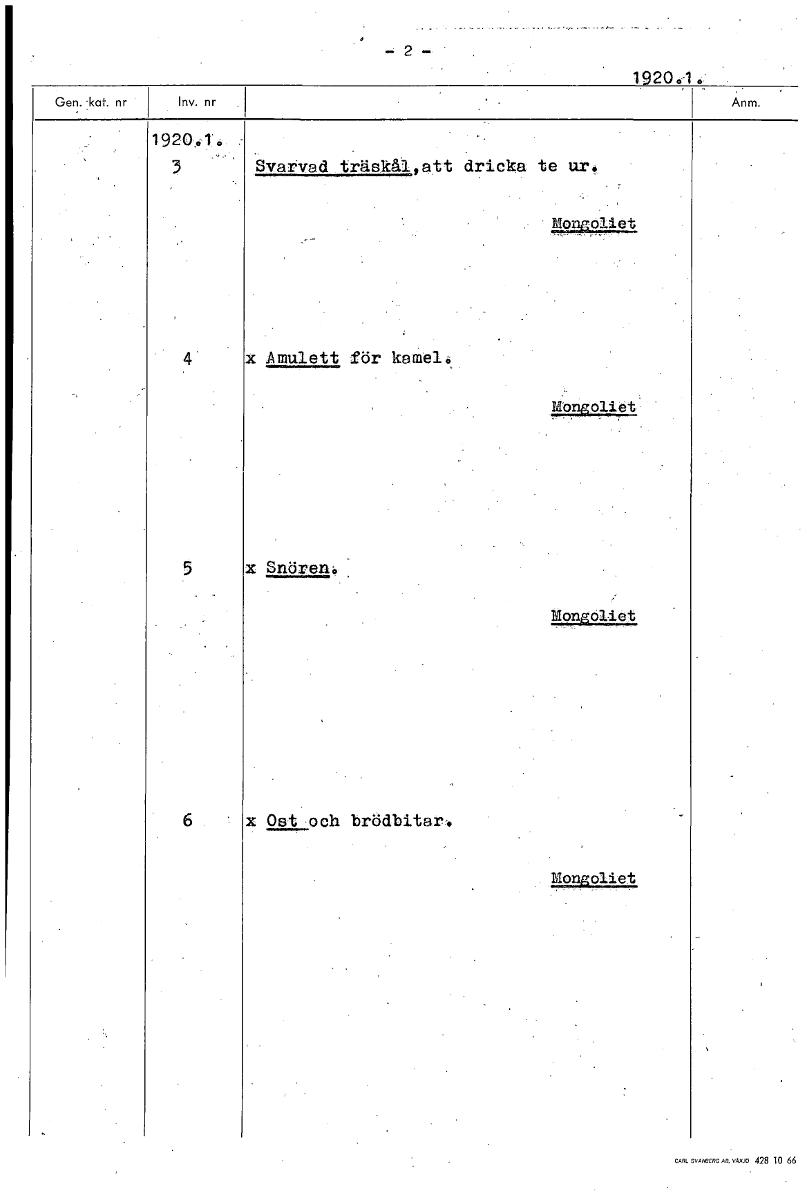 • 1920,1 192M ä. 3 Svarvad träskål4att dricka te ur, Mon oliet x Amulett för kamel, iLwoliet x Snörenh Monsoliet x Ost och brödbitar: aLrfoliet [ocr]