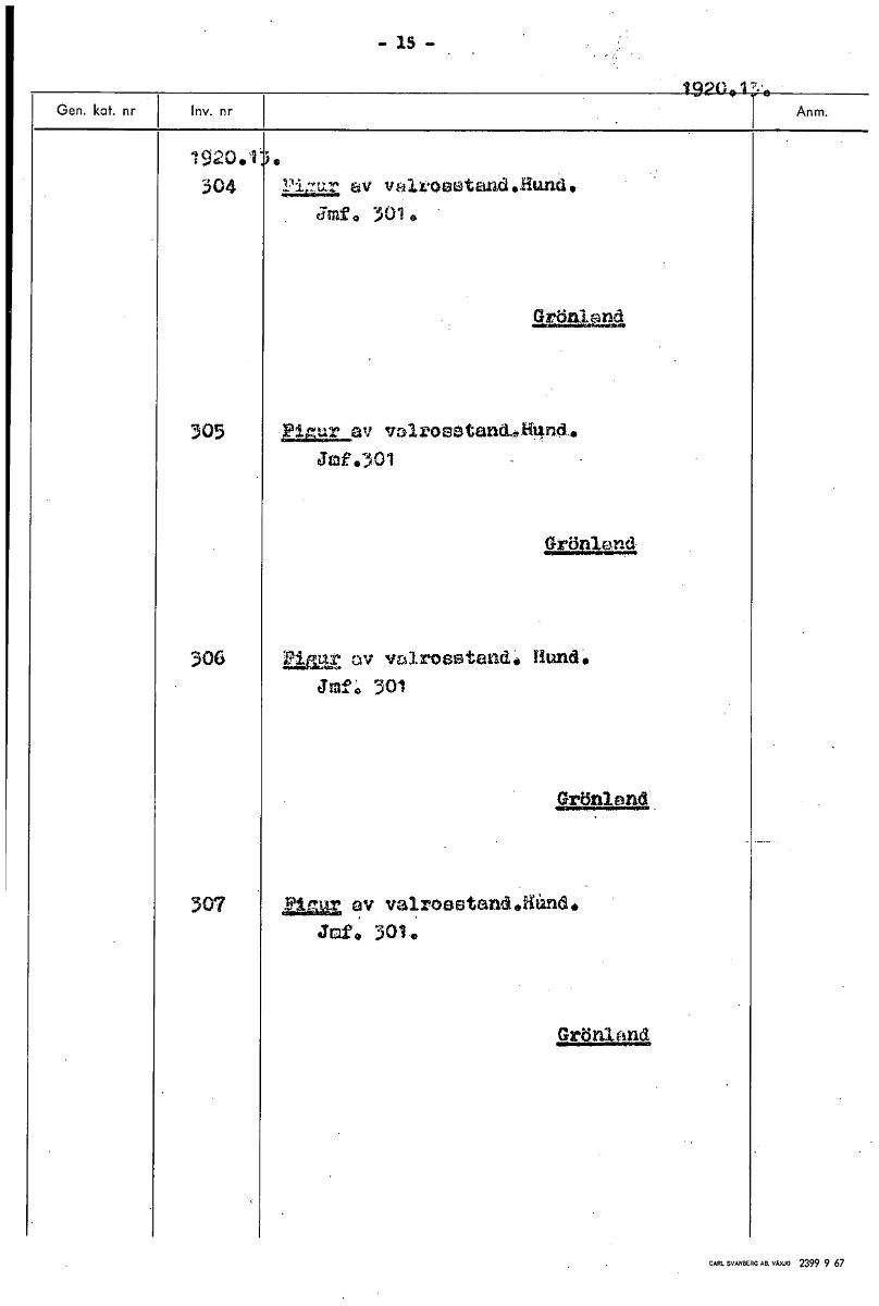 • - 15 1 20 17. 1920.1 304 av valrosotand.Hund. Jmf* 3010 Grönland 305 igur av valrosetand.1und4. Jmf.301 Grön] tid 306 War. av valrosstand: Hund. Jmf. 301 Grönlend 307 nitut av va1roostandeatind. Jemd;... Visa hela