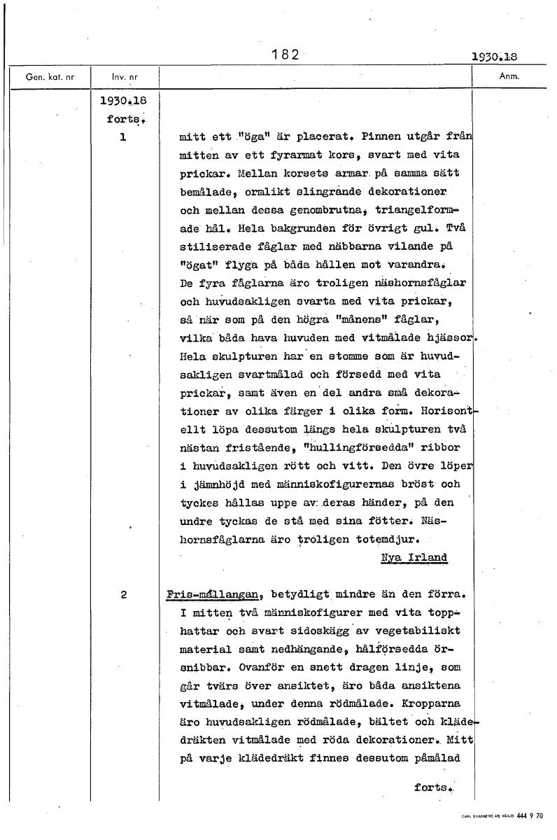 1 8 2 1930.18 1930.18 forts.. 1 mitt ett "öga" är placerat. Pinnen utgår frå mitten av ett fyrarmat kors, svart med vita prickar. Mellan korsets armar. på samma sätt bemålade, ormlikt slingrande dekor...