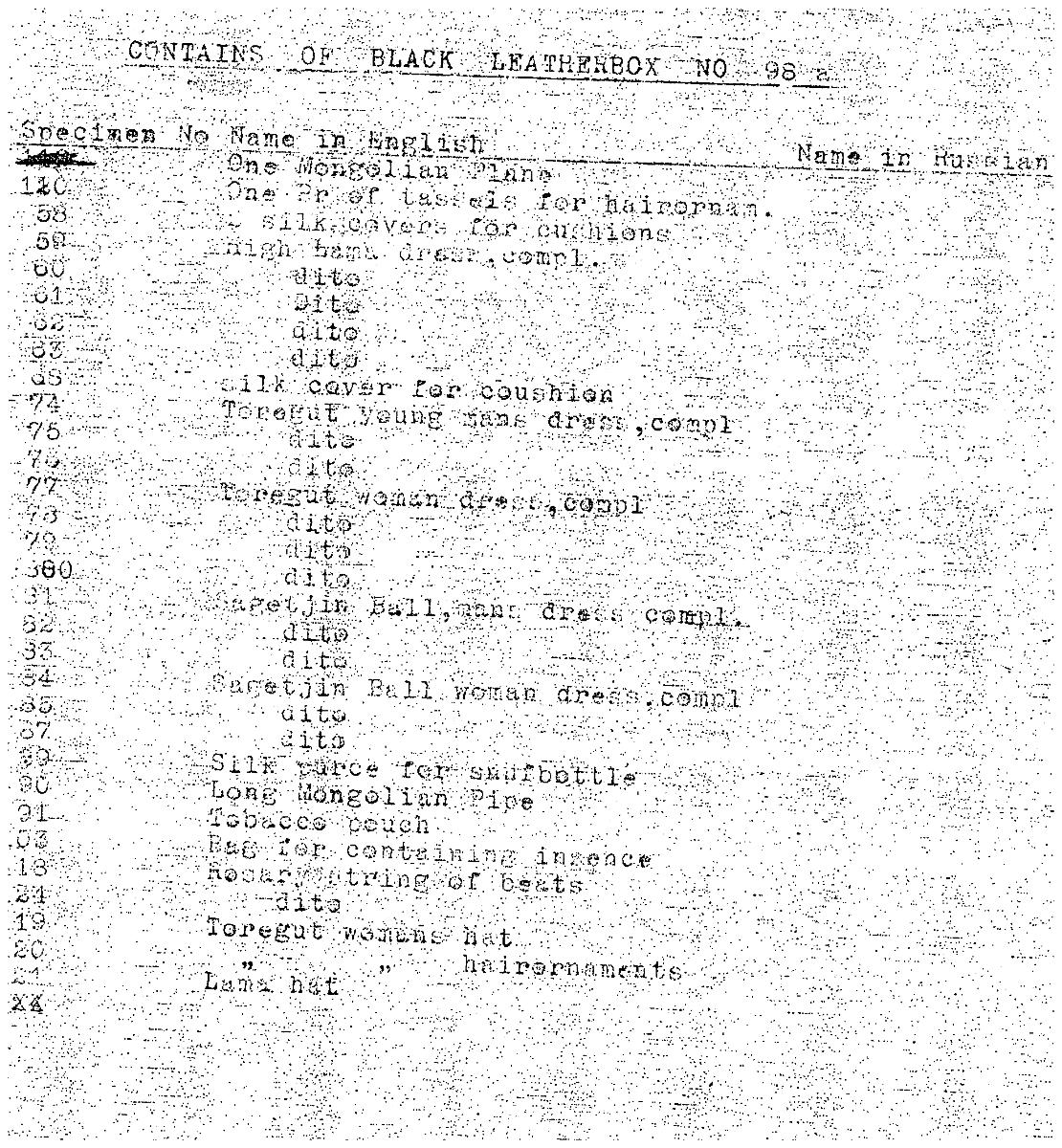 • Boksida ur Etnografiska museets generalkatalog.