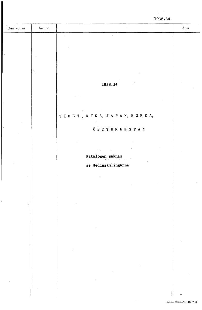 • 1938 . 34 1938 .34 T IBET, K I N A, JAPAN, KÖRE A, ÖSTTURKESTAN Katalogen saknas se Hedinsamlingarna [ocr]