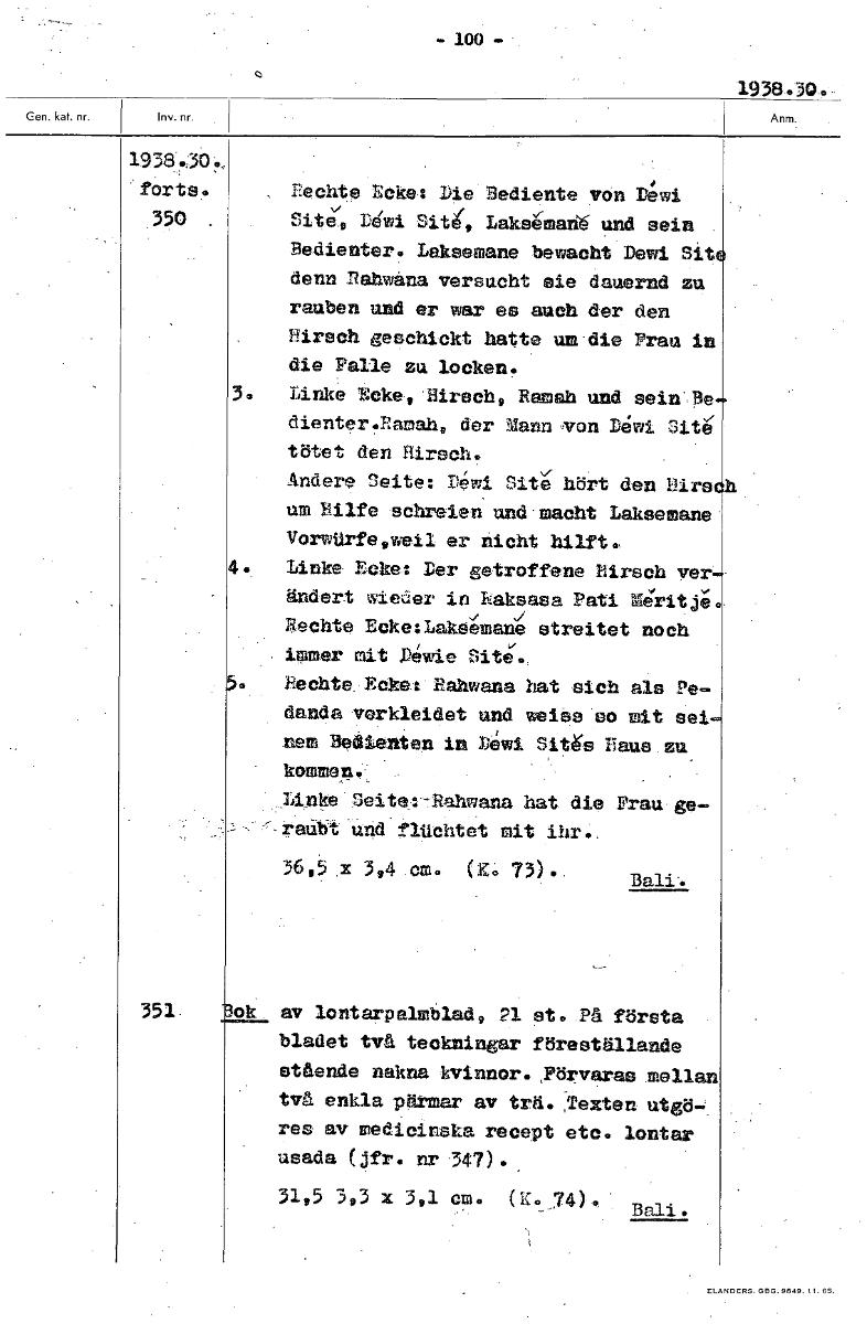 - 100 - 1938.30. 1938.30., forts. Rechte Ecke: Die Bediente von rewi 350 Sitt4 Levi Sitd, Laks6mah6 und sein Bedienter. Laksemane bewacht Dewi Sit denn Rahwana versucht sie dauernd zu rauben and er wa...