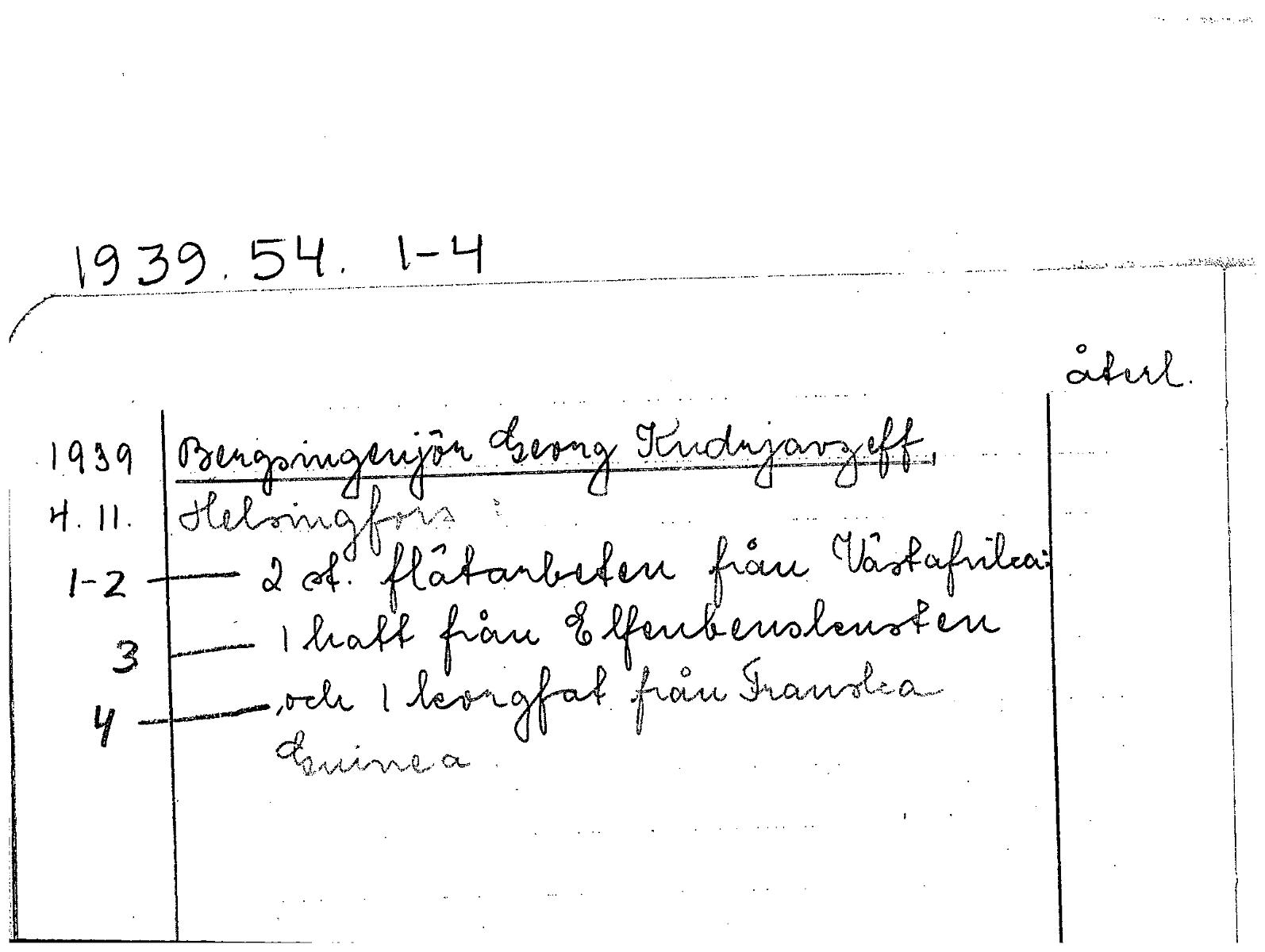 • Handskriven anteckning angående samling 1939.54