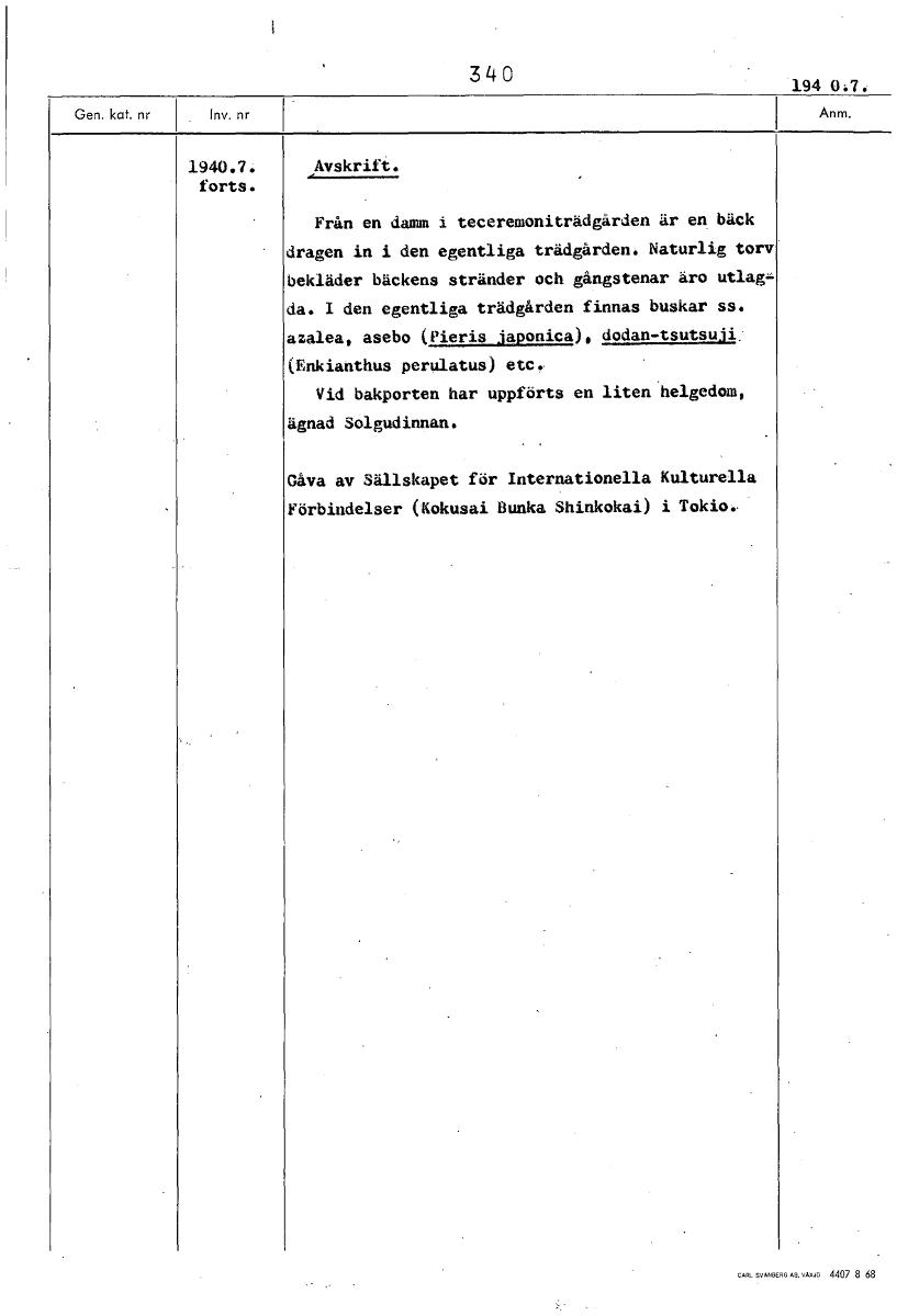 • 340 194 0.7. 1940.7. Avskrift. forts.