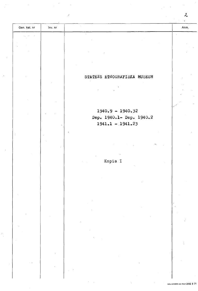 • STATENS ETNOGRAFISKA MUSEUM 1940.9 , 1940.32 Dep. 194041, Dep. 1940.2 1941.1 —.1941.23 Kopia I [ocr]