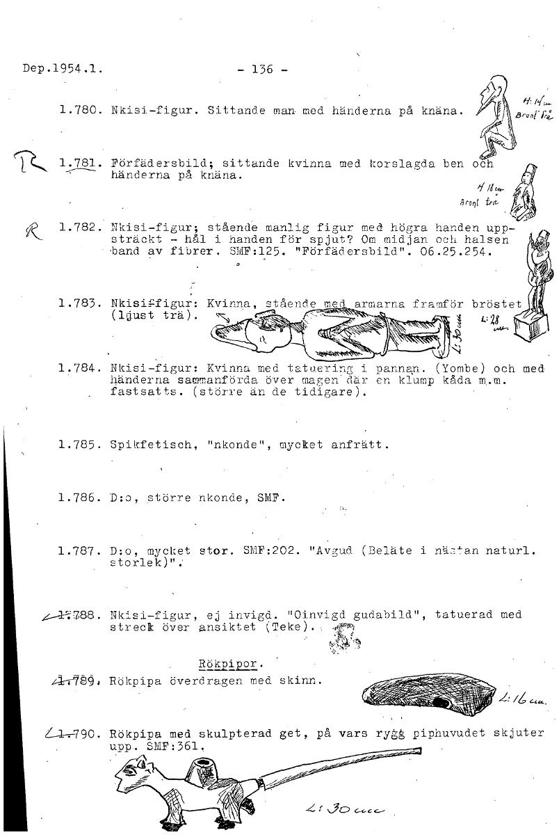 • Dep.1954.1. - 136 - 1.780. Nkisi-figur. Sittande man med händerna på knäna. aV4 (7R,.. 1:781. Förfädersbild; sittande kvinna med korslagda ben och händerna på knäna. 1.782. Nkisi-figur; stående manlig... Visa hela