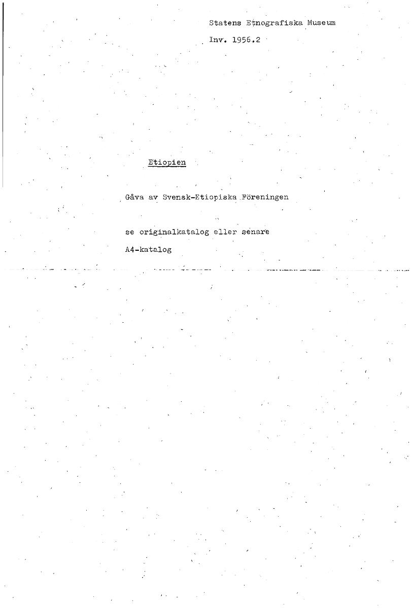 • Statens Etnografiska Museum Inv. 1956.2 Etiopien, Gåva av Svensk-Etiopiska. Föreningen se originalkatalog eller senare A4-katalog [ocr]