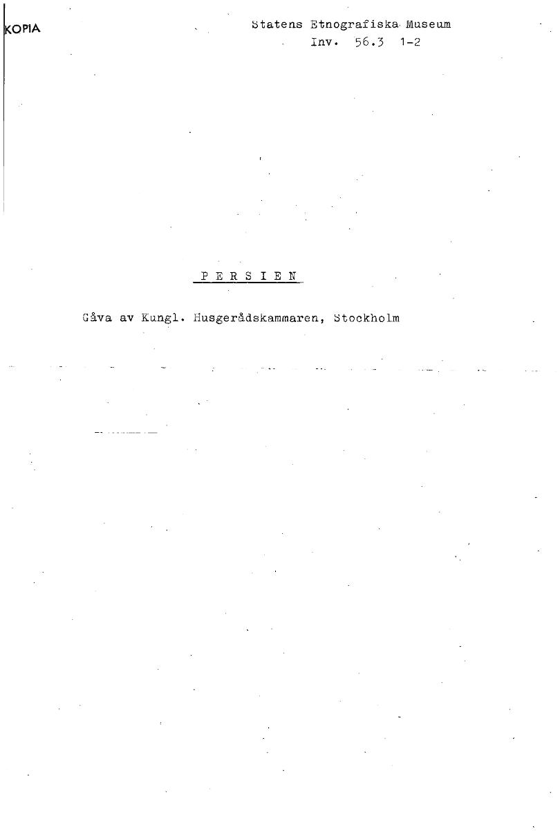 • ()NK Statens Etnografiska, Museum Inv. 56.3 1-2 PERSIEN Gåva av Kungl. Husgerådskammaren, Stockholm [ocr]