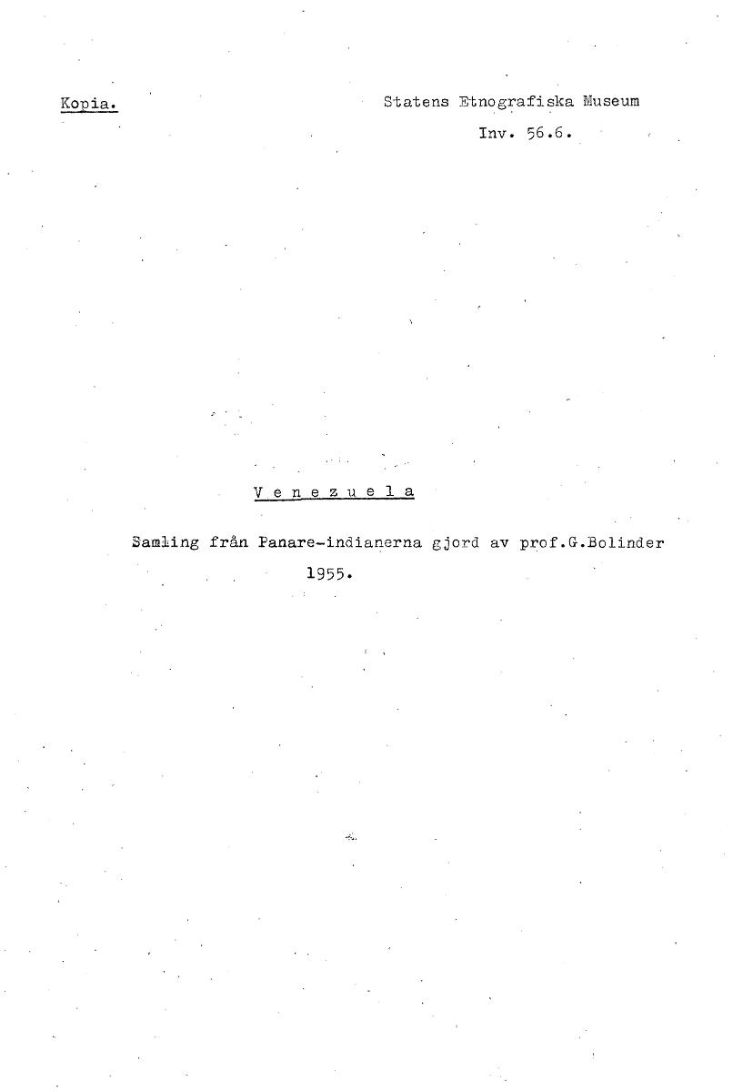 • Kopia. Statens Etnografiska Museum Inv. 56.6. Venezuela Samling från Panare-indianerna gjord av prof.G.Bolinder 1955• [ocr]