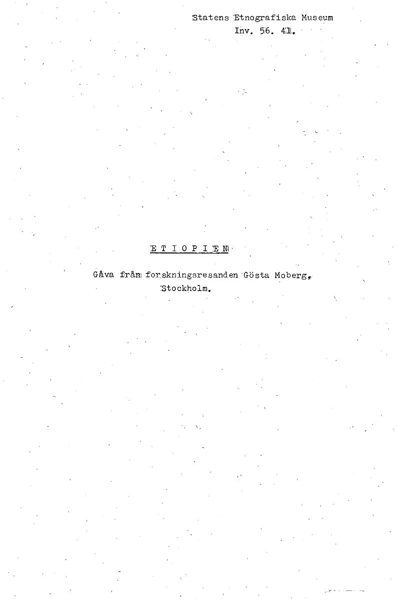 • Statens 'Etnografiska Museum Inv. 56. 41. • T 1 0 P 13 Nr Gåva från forskningsresanden Gösta Mobergr Stockholm, [ocr]