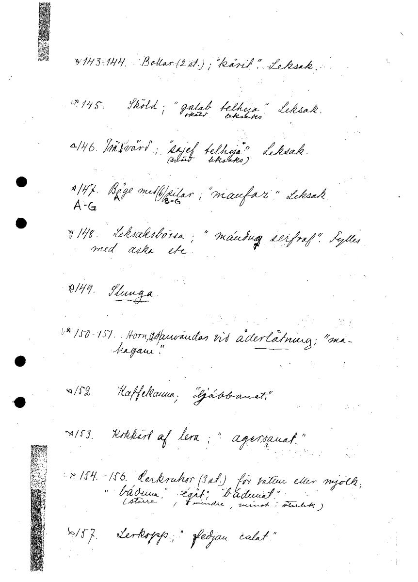 • Boksida ur Etnografiska museets generalkatalog.