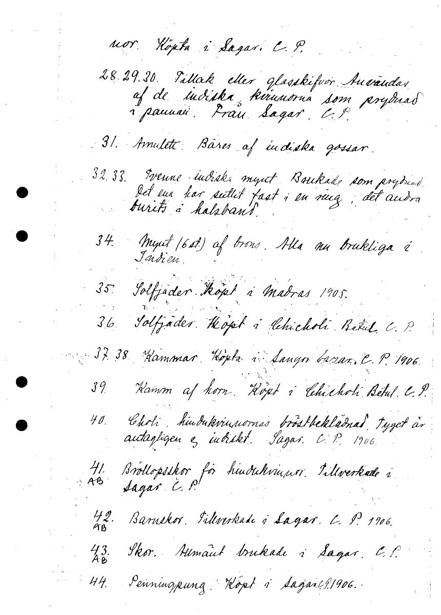 • Boksida ur Etnografiska museets generalkatalog.