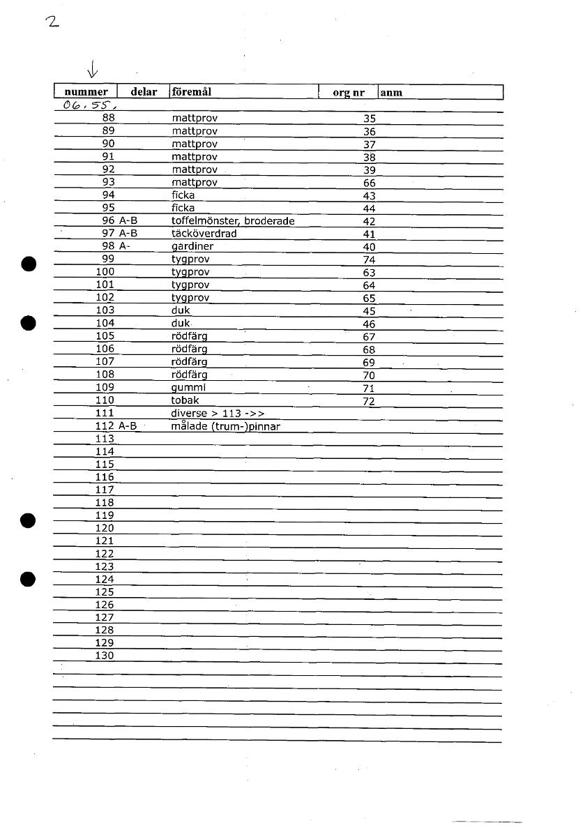 • v nummer delar föremål org nr anm 0(v • 5S , 40 • 99 72 113 114 115 116 117 118 119 120 121 122 123 124 125 126 127 128 129 130 [ocr]