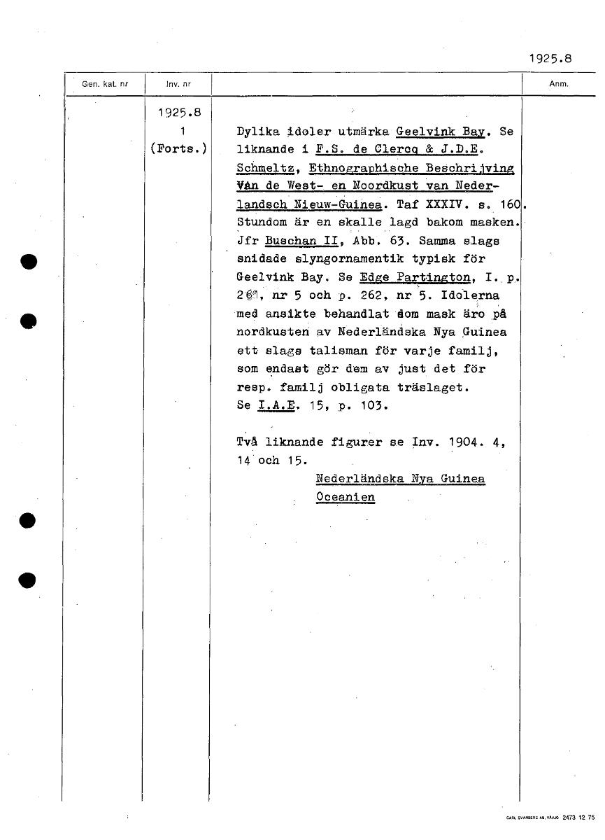 • Boksida ur Etnografiska museets generalkatalog.