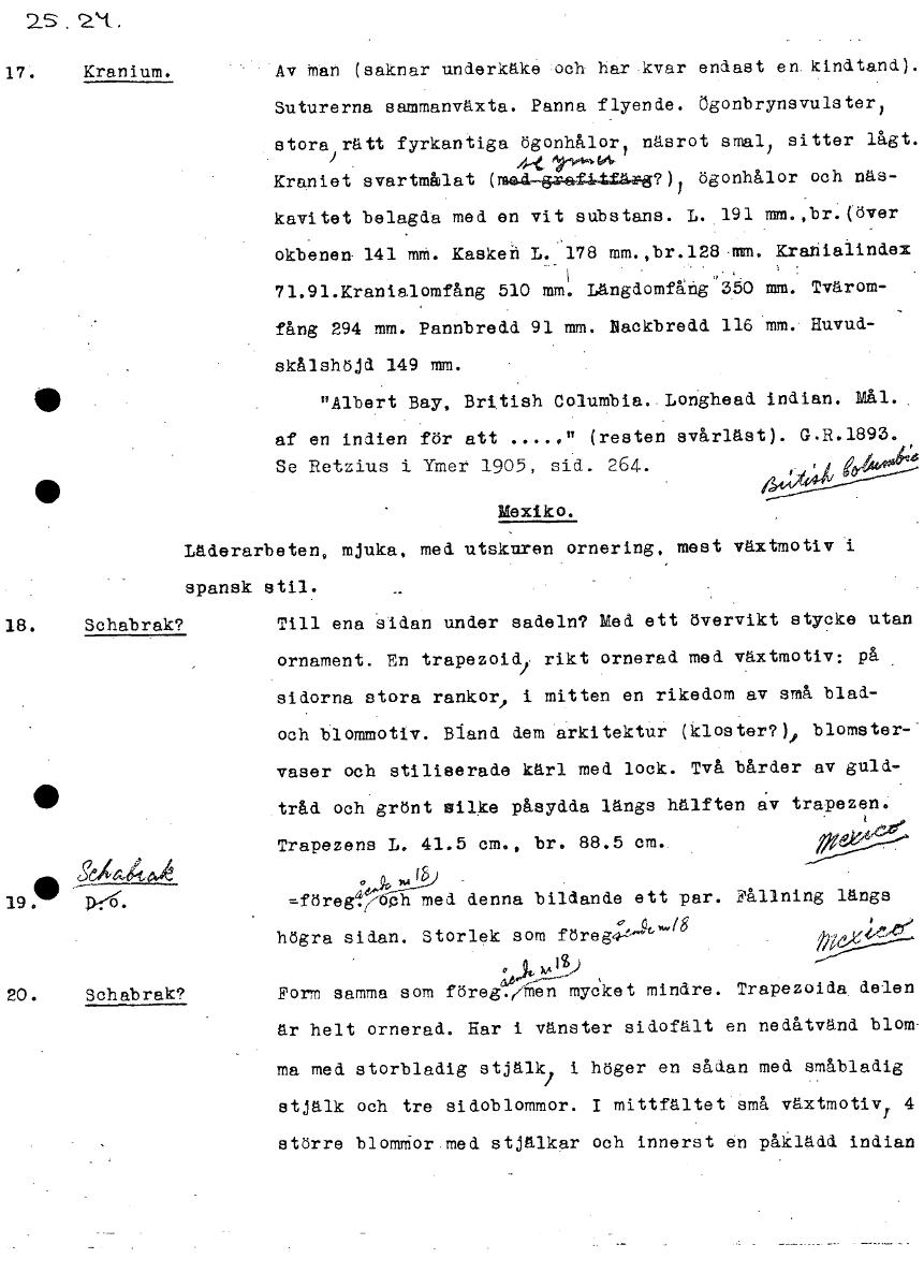 • Boksida ur Etnografiska museets generalkatalog.