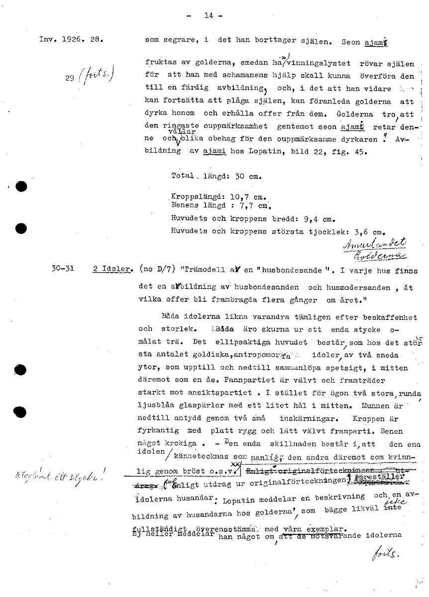 - 14- Inv. 1926. 28. som i det han segrare, borttager sjalen. Seon ajamI fruktas av golderna, emedan ha(Vinningslystet rövar själen 29 ry för att han med schamanens hjälp skall kunna överföra den. til...