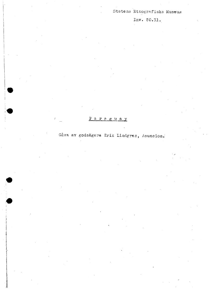 • Statens Etnogrv.fiska. Museum. Inv. 50.31. Paraguay Gåva av godsägare Erik Lindgren, Asunciolu [ocr]