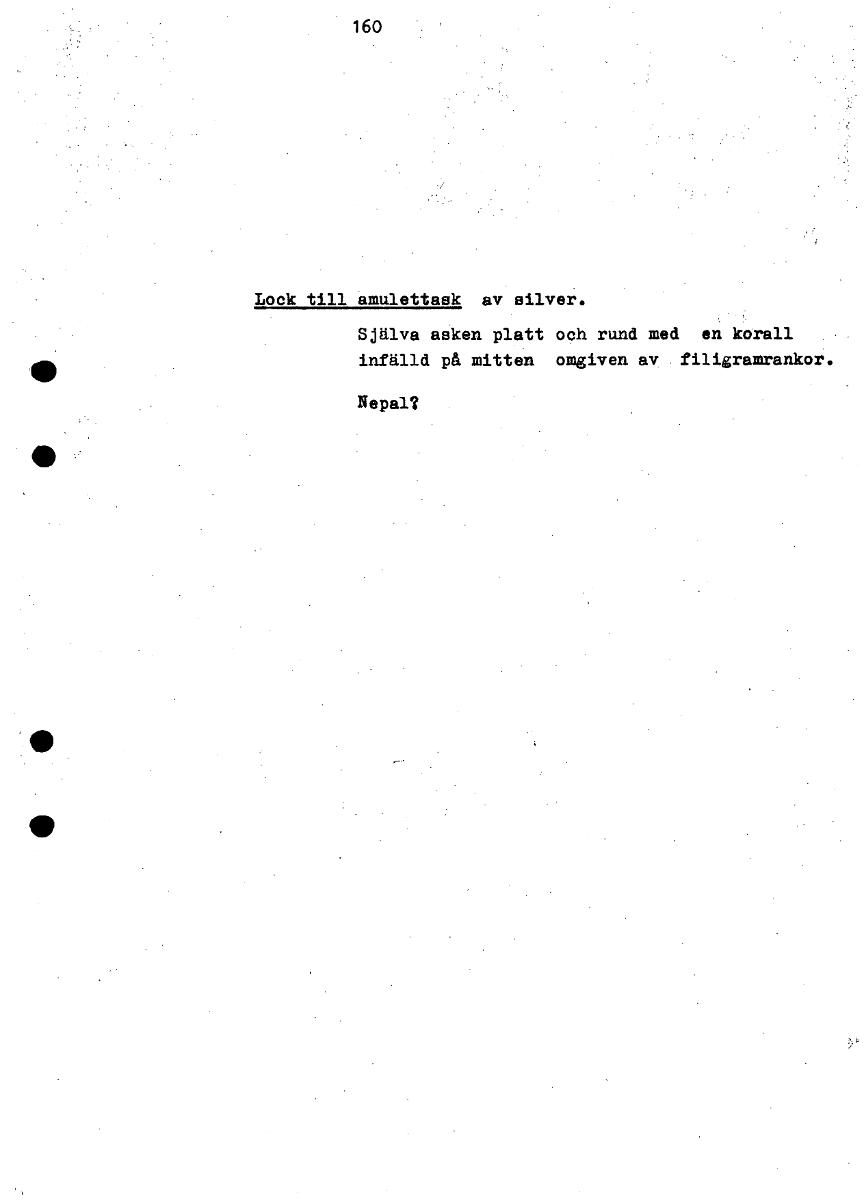 • Lock till amulettask av silver. Själva asken platt och rund med en korall infälld på mitten omgiven av filigramrankor. Nepal? [ocr]
