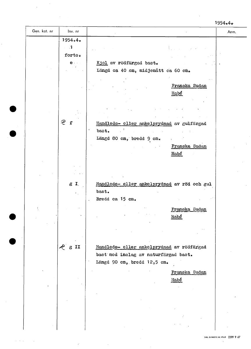 • 195444. 1 forts. e., 11191. av rödfärgad bast4 Längd ca 40 cm9 midjemått da 60 cia.. Franska Sudan Habd • r Han___.ellkelrdnad___ av gulfärgad bast. Längd BO cm bredd 9 em. Franska Sudan Habd g I, Han... Visa hela