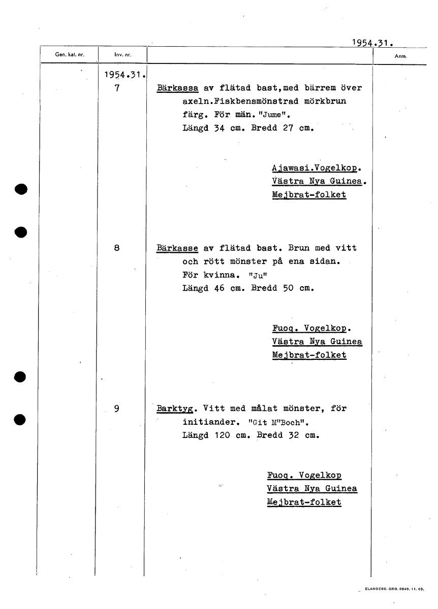 • Boksida ur Etnografiska museets generalkatalog.