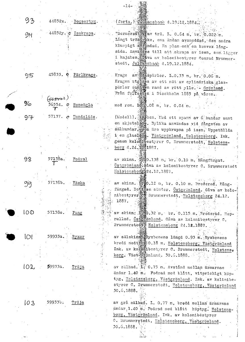 4- 33 44852x.. 'Dogsertyg.. • (forts. ) "JUlianehaab (1.19.12..1884.i 99 .44852y-0 Isskra,pa. "Bermåsrsir 'gav trä. m, br.A.022:m. • Långt trä 4ke, ena ändan aysneddad, den andra klumpigt ayråndad. En...