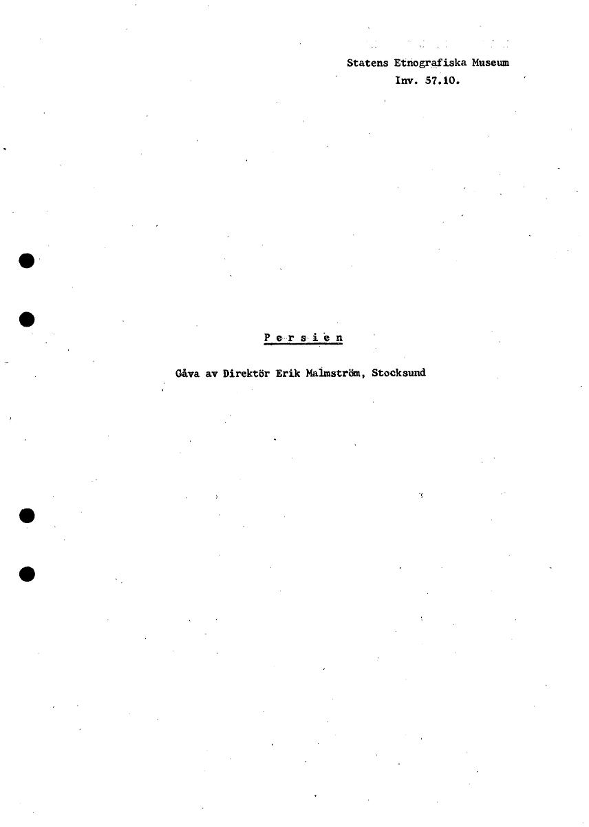 • Statens Etnografiska Museum Inv. 57.10. Persie n Gåva av Direktör Erik Malmström, Stocksund • [ocr]