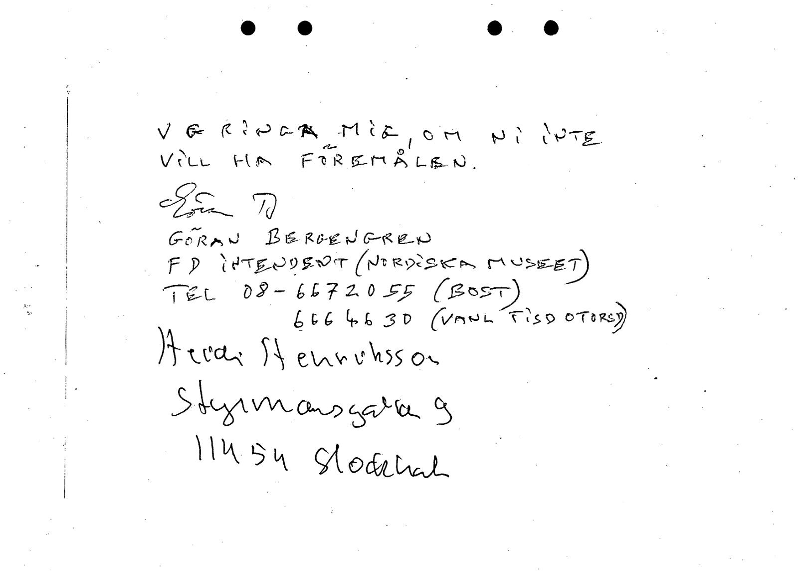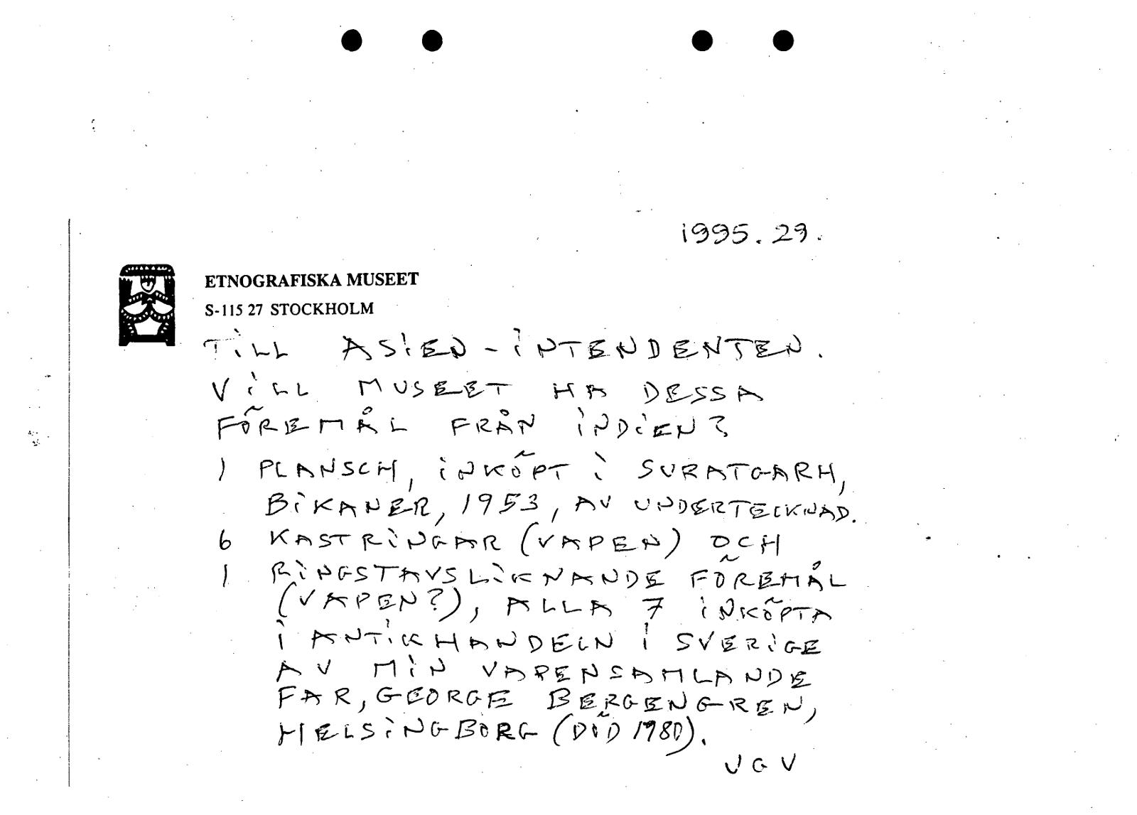 • ETNOGRAFISKA MUSEET S-115 27 STOCKHOLM Till Asien-intendenten vill museet ha dessa föremål från Indien? [ocr]