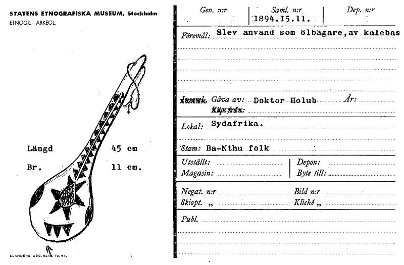 • Katalogkort ur Etnografiska museets arkiv.