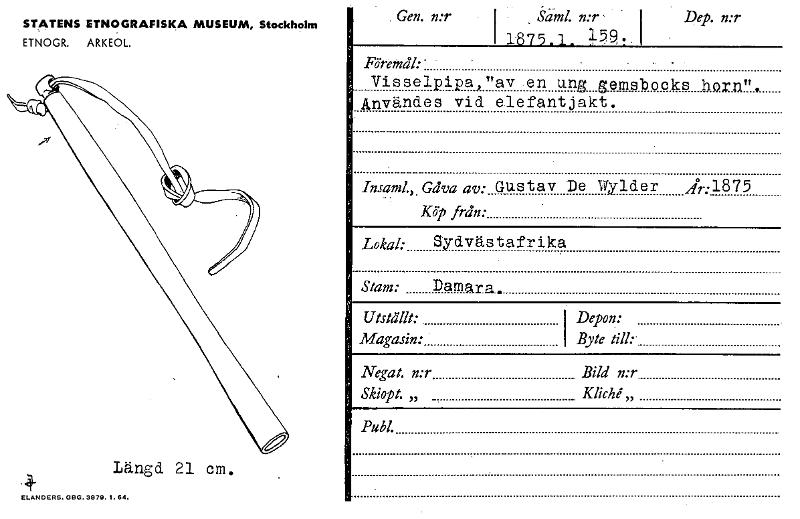 • Katalogkort ur Etnografiska museets arkiv.
