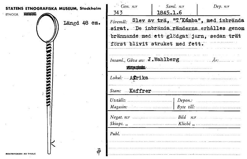 • Katalogkort ur Etnografiska museets arkiv.