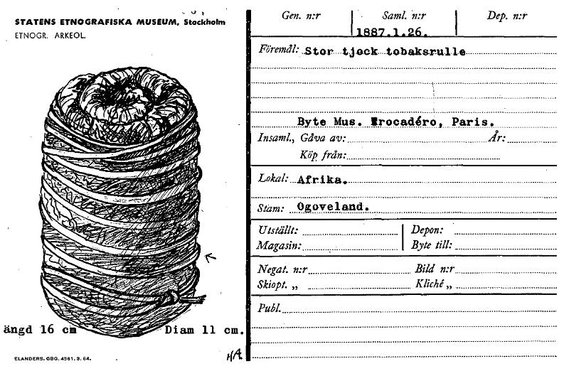• Katalogkort från Etnografiska museets arkiv.