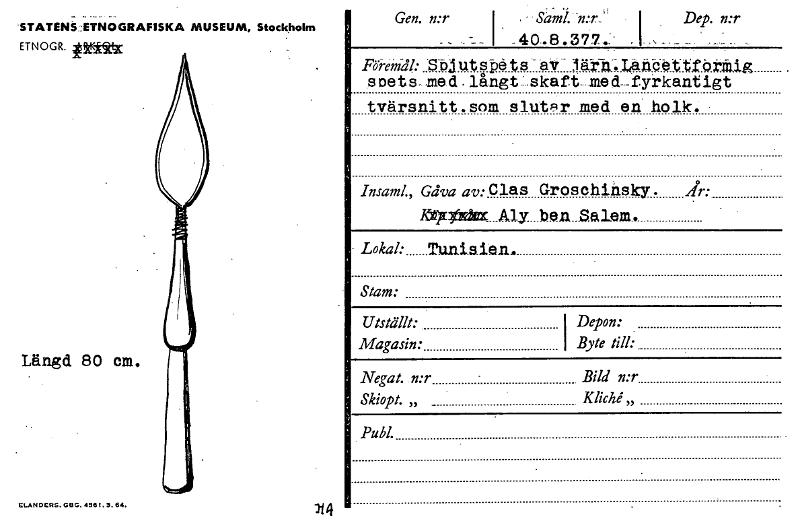 • STATENS ETNOGRAFISKA MUSEUM, Stockholm ETNOGR. 45515ex Längd 80 cm. ELANDERS. GBG. 4581. 3. 84. 2i 4 Gen. n:r - i .-. Sizml.-n:r" 40..8.377.: I Dep. n:r Föieindl: •Sbj ut spe' ts - at- 1 ätt-. Lene e... Visa hela