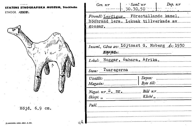 • STATENS ETNOGRAFISKA MUSEUM, Stockholm ETNOGR. Höjd. 6.9 cm. Gen. n:r 27.-----.. ' k Sand: 'n:r 30.39-.-50-:- ---: 1 Dep. n:r • :::' 7.• : 1 - , Föremiklifigum— Före$t4llande kamel- Rödbränd lera Le... Visa hela