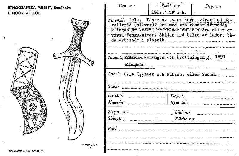 • Katalogkort från Etnografiska museets arkiv.