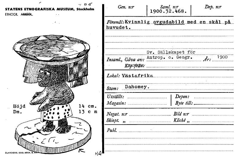 • Katalogkort från Etnografiska museets arkiv.